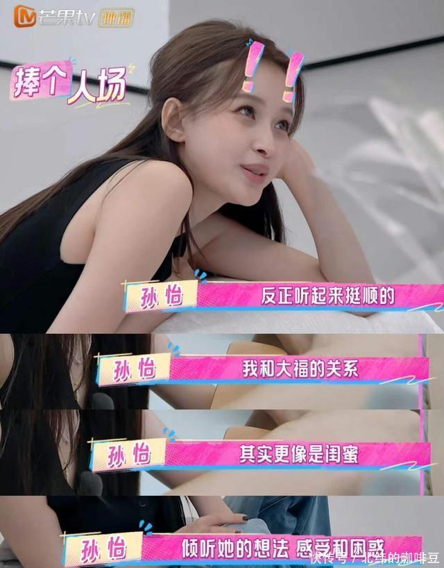 我们不要太在意芒果的故事线,只看细节。 这才是看真人秀的关键。 来,跟着小编,看热闹去喽! 一 节目一开播,孙怡就说了这么几件事。 首先,自己在很年轻的时候选择了婚姻,并且不后悔。 这一段是她和马天宇等几个好朋友聊天时,提到她因为怀孕生女儿一年多没有工作。