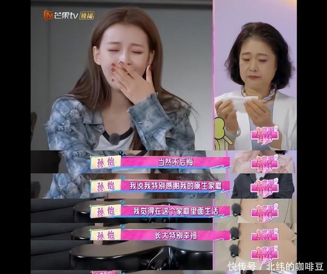(真奇怪,她说这段话时闭眼时间特长,怎么截都闭着,根据微表情理论,您自行判断这段话的真实性) 几周后另一期节目里,孙怡态度完全不同了。 她哭着说,生完女儿后根本不敢休息,害怕停工太久会被取代,于是马不停蹄选择复出,让妈妈来帮忙带孩子,自己就去忙去了。