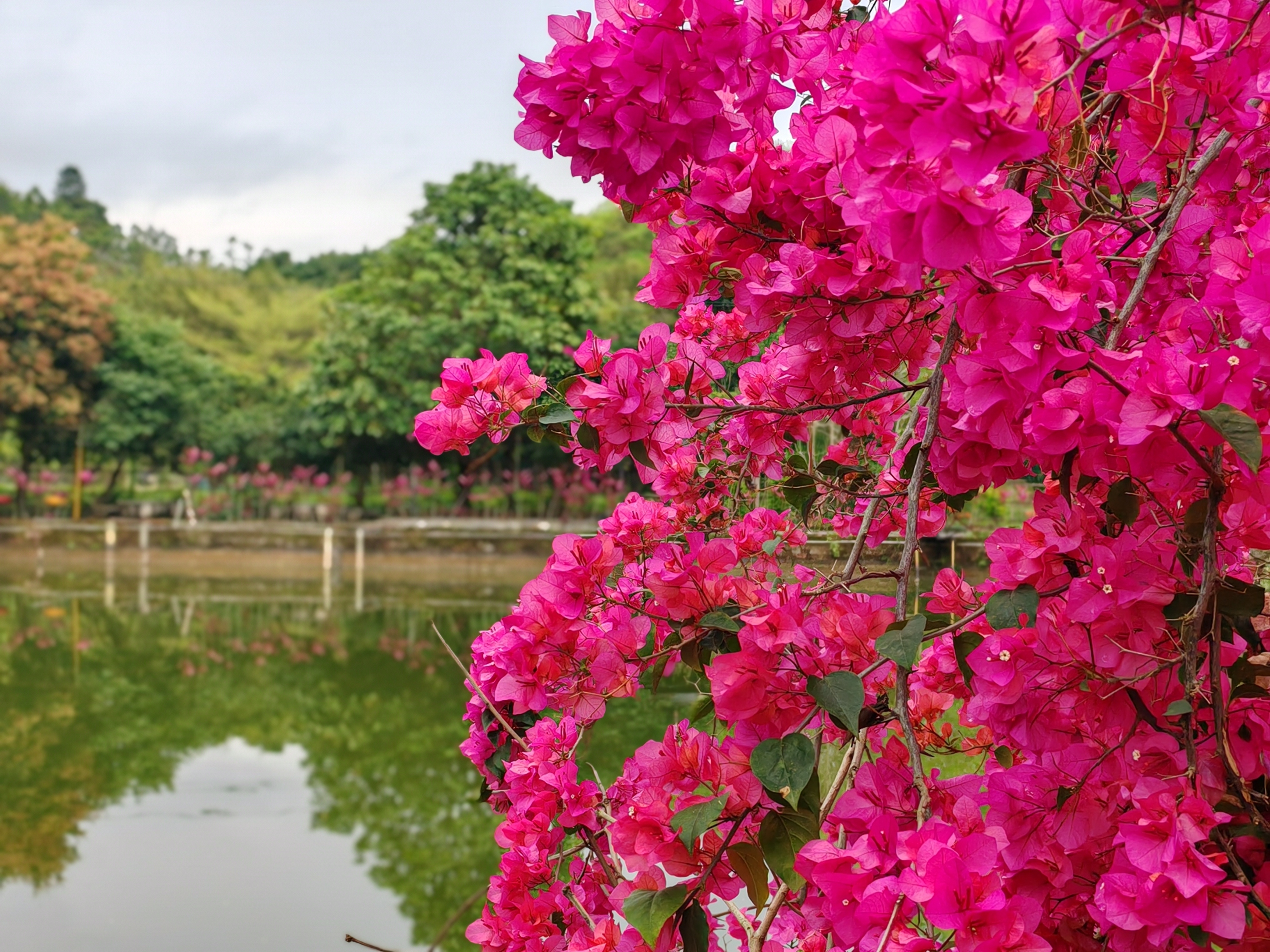 含蕊红三叶,临风艳一城。三角梅有个特点——给点阳光就灿烂!墙角、路边、篱笆旁,随便找个角落扎下根,它就还你一片“姹紫嫣红开遍”。那三片薄如蝉翼的花瓣,在阳光下透亮得像宣纸,却又倔强地挺立着,热烈得毫无保留,所以来安塘赏花的人,都会特意在三角梅花墙前站一会儿,沾沾这种“向阳而生”的劲儿,说不定,下一个元气满满的就是你!