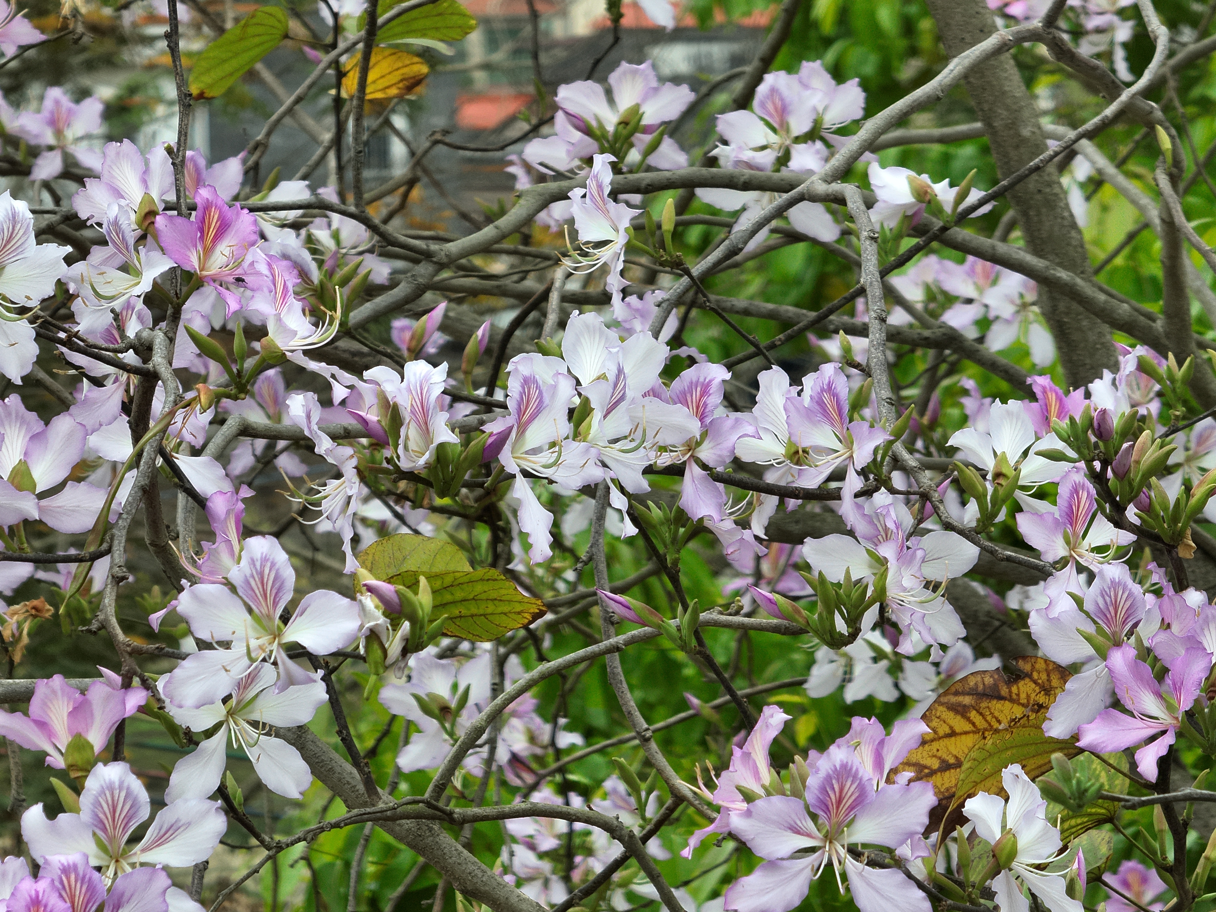 相比于前面几位的风格迥异,紫荆花则要含蓄得多。它不争不抢,只是静静绽放,淡紫色的小花密密匝匝地开在枝干上,那紫色不是浓艳的紫,而是带点粉调的温柔紫,像少女脸上淡淡的红晕。花瓣小小的、嫩嫩的,五片花瓣围成一圈,中间探出几根细细的花蕊,精致得像艺术品,当从树下经过时,带起一阵风,花瓣飘落在手心里、肩膀上,那是春天写给你的、最小众的“限定版情书”——不需要花钱,不需要排队,只需要你恰好经过。