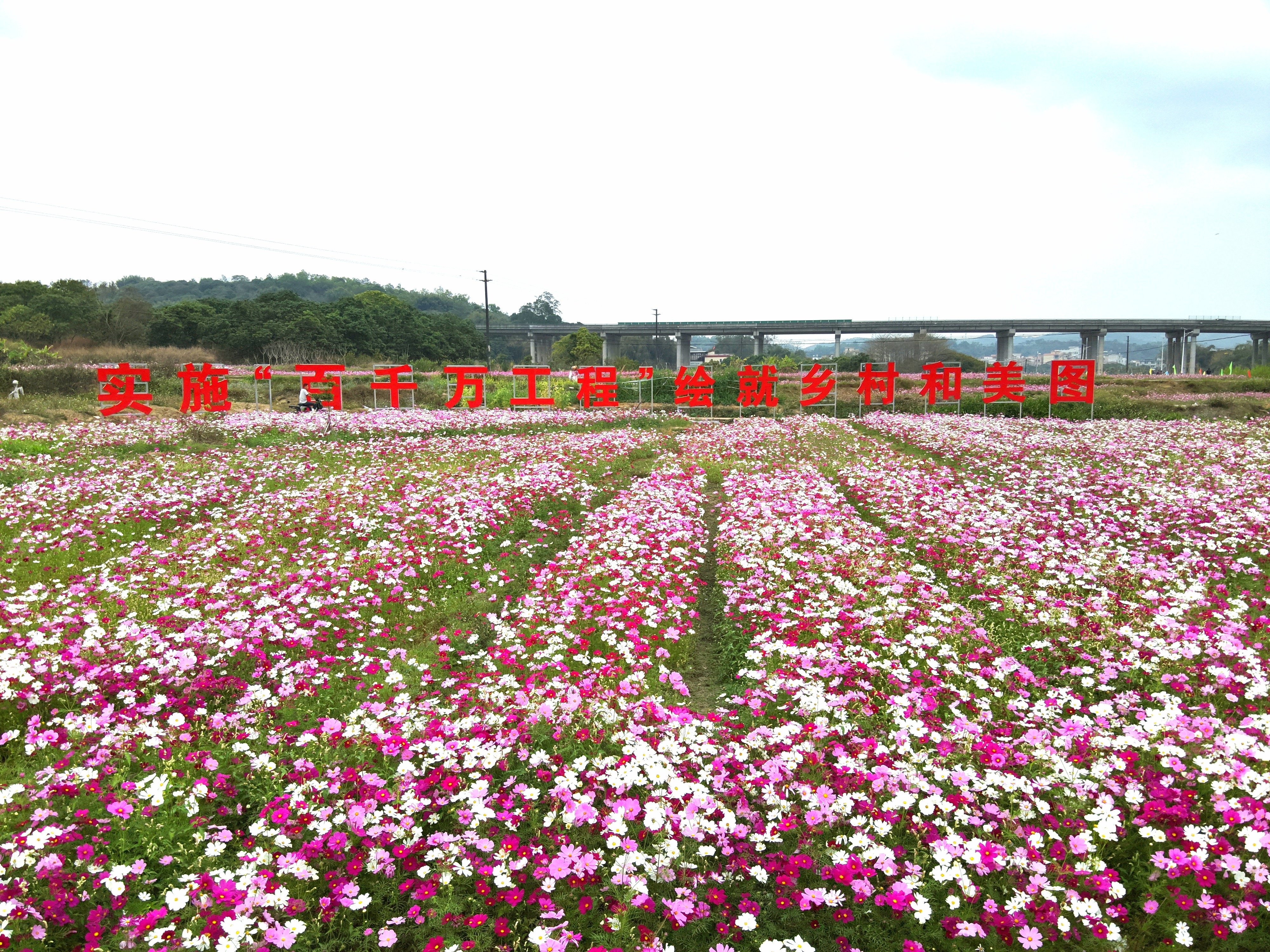 都栗村的那片格桑花海,绝对是今年的“顶流”,它们细细的杆子顶着八瓣的小花,粉的像霞,白的像雪,紫的像梦。等风一吹,它们就摇头晃脑,像一群穿着花裙子的小姑娘在跳圆圈舞。它们开得那么密、那么野,远远看去,整片花田就像打翻了的马卡龙盒子,甜度爆表!走在花间小径上,心情就自动切换成“治愈模式”,随手一拍,原图直出就能让你的朋友圈收获一片“哇塞”!