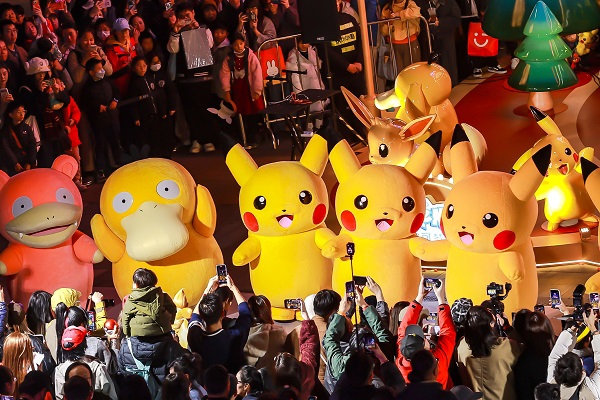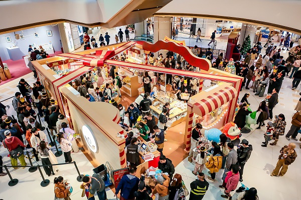 南区一楼中庭的宝可梦“奇迹梦旅,冬日狂欢”主题快闪店,宛如梦旅中的温馨补给站,重磅发售集换式卡牌游戏精品礼盒、游历礼盒等,节日祈愿系列皮卡丘限时亮相。南区B2层“卡比兽冬日好梦”互动专区内,巨大卡比兽气模慵懒酣眠,环绕的柔软海洋球池里藏着“树果”彩蛋,让游客沉浸式体验童趣休憩时光。
